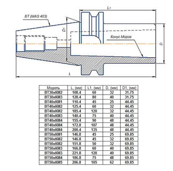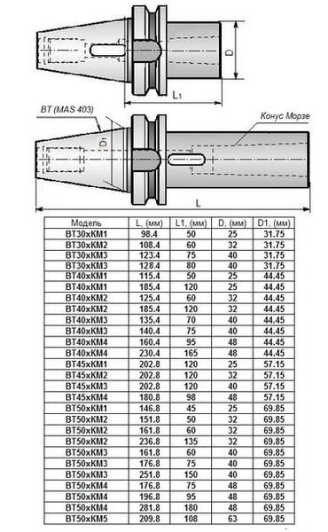 Втулка переходная с хвостовиком 7:24-ВТ30 (MAS403) на КМ1х 50мм с отверстием под клин для станков с ЧПУ "CNIC"