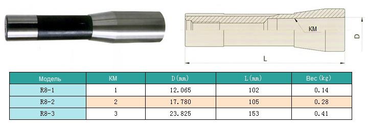 Втулка переходная с хв-ком R8 (7/16"- 20UNF) на КМ2 с отверстием под клин "CNIC"