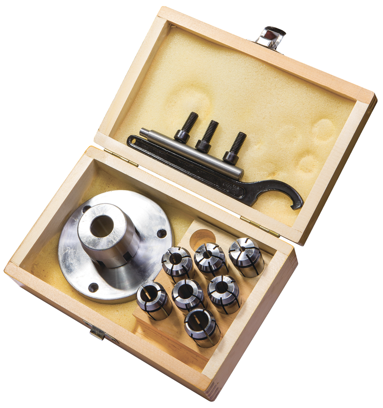 Цанговый зажим и набор цанг 4-16мм используются для качественной фиксации конических, цилиндрических предметов. Цанга со стороны головки имеет специальные осевые прорези (разделяющие лепестки). Зажим осуществляется под воздействием осевого усилия, которое приложено к наружной или внутренней части цанги.