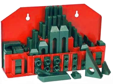 Комплект приспособлений для крепления заготовок на рабочих столах фрезерных или сверлильных станках.