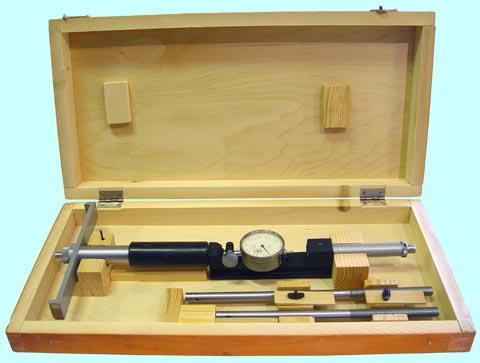 Индикаторный нутромер применяется для внутренних измерений. Его механизм состоит из клиновой или рычажной передачи, связанной с отсчетным устройством. Нутромер вводится в деталь, центрирующий мостик совмещает линию измерения с осевой плоскостью отверстия, размеры которого определяют.