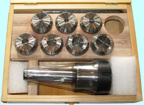 Патрон Цанговый с хвостовиком КМ4 (М16х2,0) с набором цанг-втулок SC32 из 7шт (6-25мм)(нет ц-вт.D8)уценка