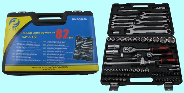 Набор "CNIC" 82 предмета GW-B5082M (торцевые головки 1/4"-1/2", ключи, вставки) CrV в кейсе (упакованы по 3шт.)