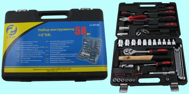 Набор "CNIC" 58 предметов JJ-BT58 (торцевые головки 1/2", ключи, отвертки, вставки) CrV в кейсе (упакованы по 4шт.)