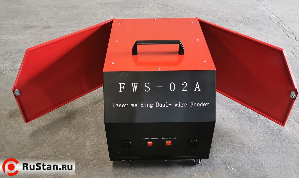 Аппарат комплектуется автоматическим податчиком одновременно двух сварочных проволок в зону сварки FWS-02A. Скорость подачи регулируемая. Включение подачи происходит синхронно с нажатием кнопки пуск на сварочной головкке (пистолете).