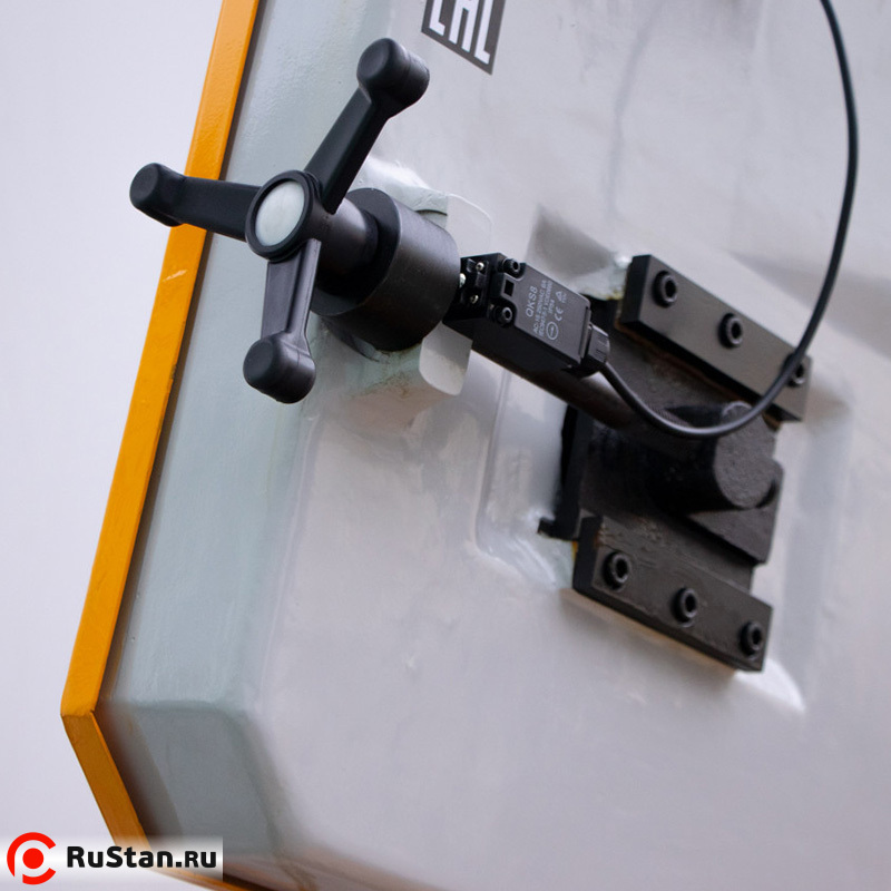Модель оснащена гидравлическими тисками и гидроприводом с регулировкой подачи пильной рамы на деталь при резке.