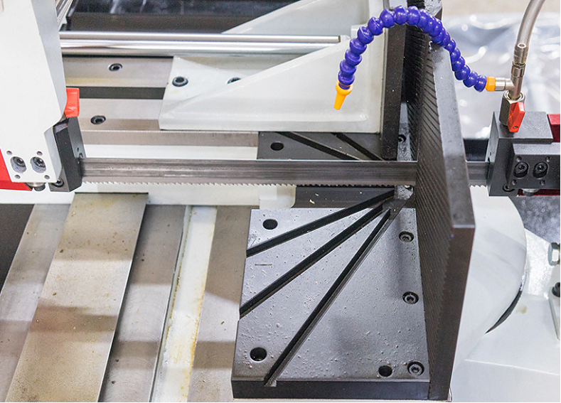 На автоматических станках возможна работа как в ручном режиме (каждая операция выполняется вручную посредством нажатия соответствующей кнопки), так и в автоматическом режиме, когда станок выполняет весь цикл резания: зажим заготовки – подвод заготовки – запуск пилы – опускание рамы – остановка пилы – подъем рамы – отжим тисков. В автоматическом режиме оператору необходимо лишь обеспечить подачу заготовок, предварительно настроить концевой ограничитель на необходимую длину получаемых заготовок и запустить цикл пиления кнопкой «Пуск».