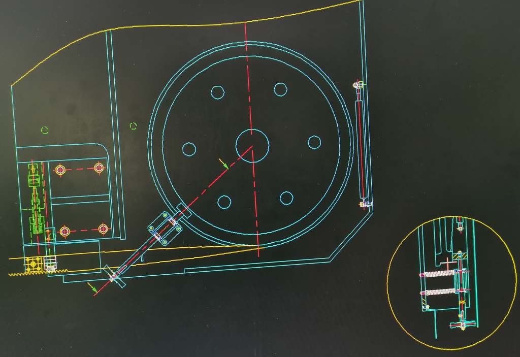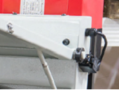 - Предохранительный концевик на кожухе маховика и концевик за маховиком натяжения полотна для контроля/отключения станка при обрыве полотна