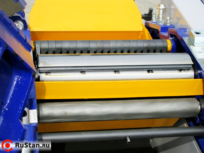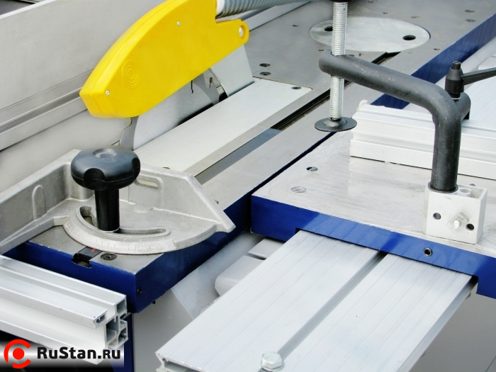 Фуговально-рейсмусовый станок. 3 ножа вращаются со скоростью 4000 об/мин, что позволяет получить гладкую поверхность. Возможно строгание под углом. Для удобства работы верхние столы могут быть сняты.