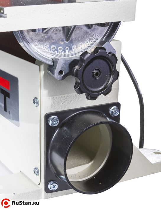 Массивный рабочий стол выполнен из чугуна, оборудован двумя перпендикулярными пазами для работы с упором или устройством шлифования по кругу. Встроенный вентилятор удаляет пыль из рабочей зоны даже без подключения к внешней вытяжной установке.