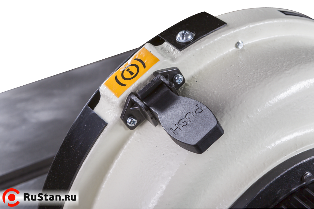 В целях безопасности и удобства смены шлифовальных кругов станок оборудован системой торможения, которая останавливает вращение тяжелой чугунной тарелки не позднее чем через 10 секунд после выключения.