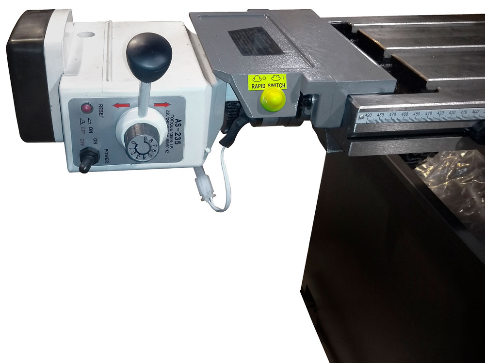 Опционально станок может быть дооснащен устройством автоматической подачи, которое устанавливается с левой стороны рабочего стола и позволяет осуществлять подачу по продольной оси в автоматическом режиме, улучшая качество получаемой поверхности и увеличивая производительность изготовления деталей. Также устройство имеет функцию ускоренного перемещения рабочего стола для сокращения времени подвода инструмента к детали и его отведения, для удобной установки/снятия обрабатываемой детали.
