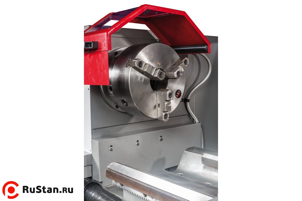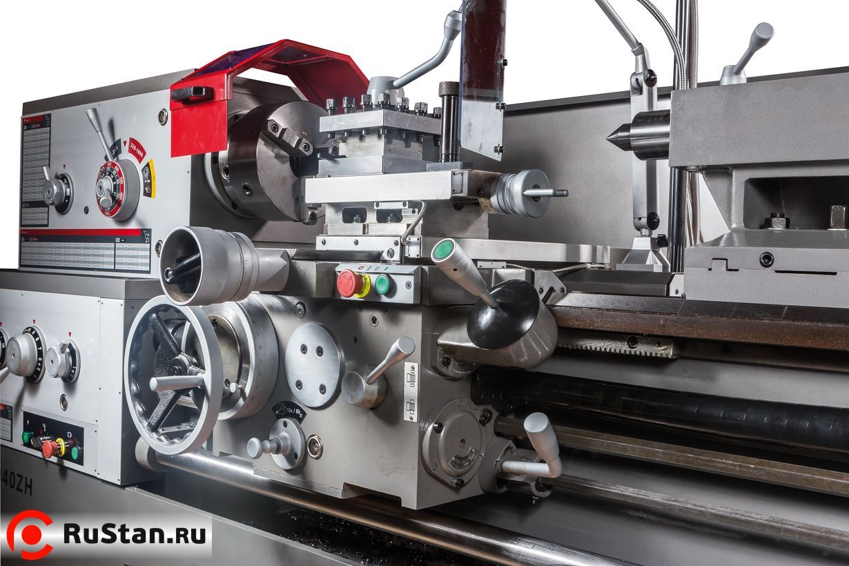 Станок оборудован мощным асинхронным двигателем на 7,5 кВт, предусмотрено 12 режимов скоростей шпинделя, включая режим 36 об/мин для нарезания резьбы плашкой. Биение на шпинделе у данной модели не превышает 9 микрон, цена деления нониуса – 0,02 мм. Коробка подач имеет 65 предустановленных режимов работы в продольной и поперечной плоскости, что позволяет нарезать все основные типы резьб. Для облегчения смены режимов предусмотрен толчковый режим пуска двигателя. Для удобства работы оператора GH-26120ZH DRO оборудуется устройством быстрого перемещения суппорта, а также педалью тормоза и экстренного отключения. Массивная станина станка отливается из высококачественного чугуна и служит эффективным гасителем вибраций, а также помогает отводить тепло от шпинделя и и инструмента. Направляющие станины проходят закалку токами высокой частоты, затем шлифуются.