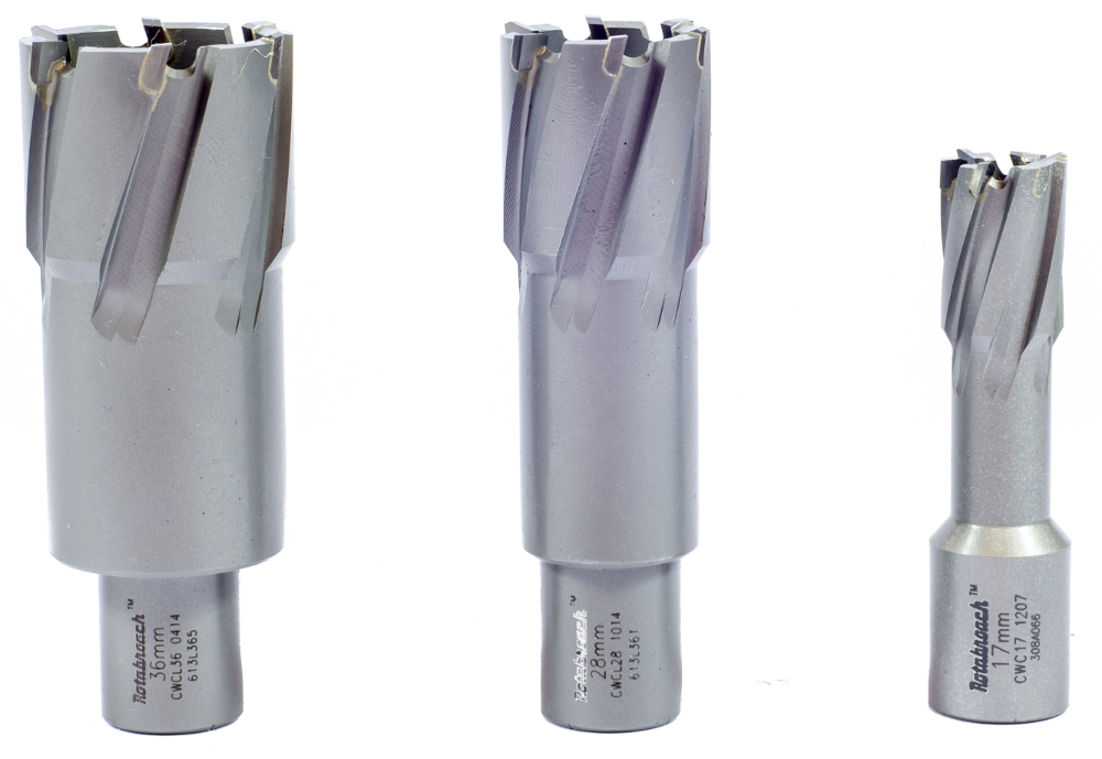 Это популярные кольцевые сверла на рынке сверлильного инструмента. Результаты испытаний подтвердили износ быстрорежущих кольцевых сверл Rotabroach на 35,5% меньше и время сверления 200 отверстий на 16,4% быстрее в сравнении с быстрорезами других производителей.